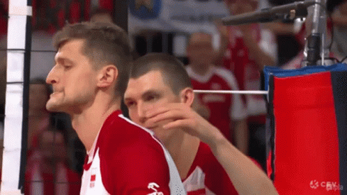 Piotr Nowakowski, a Polish volleyball player, shows irritation during a EuroVolley match.