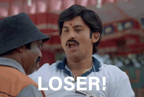 Danish Sait as Nograj mocks another man, making an 'L' sign and calling him a 'LOSER!'.