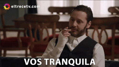 Benjamin Vicuña smoking a cigarette, with the text 'Vos Tranquila' on screen, conveying a relaxed mood.