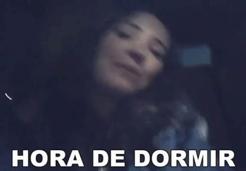 a woman is smiling with the words hora de dormir below her