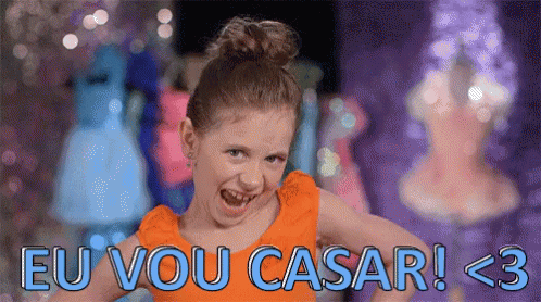 Little girl excitedly shouts 'I'm getting married!' with a big smile, celebrating her upcoming wedding.