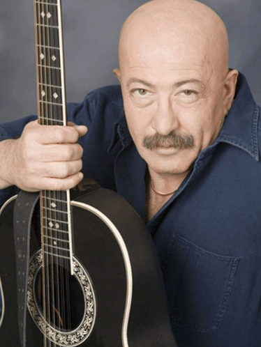 Александр Розенбаум, известный врач, певец, гитарист и актер, позирует с акустической гитарой.