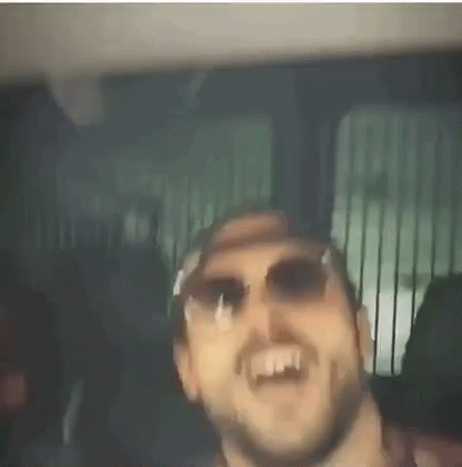 Vso Pex, a rapper, makes a joyful and energetic expression with a rock-on gesture, wearing sunglasses and a cap in a car.