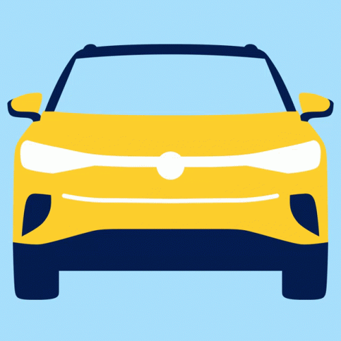 A front view animation of the Volkswagen ID.4 electric car, showcasing its body color changing from blue to orange.