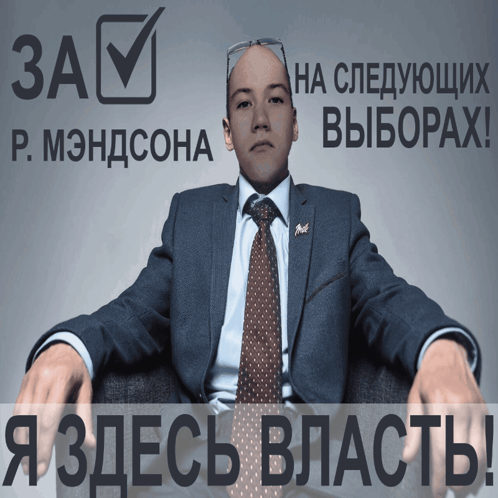 R. Mendsona declares 'I am the power here!' for the upcoming governor elections, seated confidently in a suit.