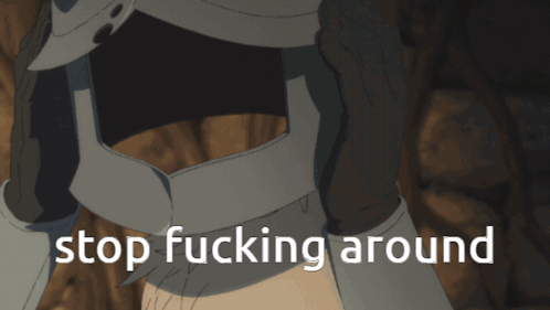 a cartoon of a man with horns and the words stop fucking around on the bottom