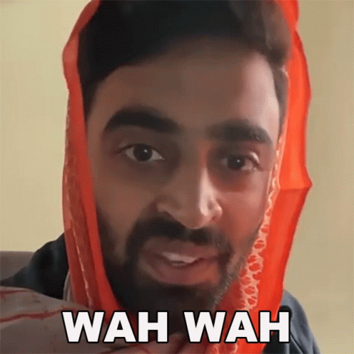 Comedian Rahul Dua expresses 'Wah Wah' while wearing a red scarf around his head.