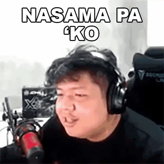 Trinhil, wearing headphones, reacts to something with the caption 'WALA PA DIYAN!' (Not yet there!).