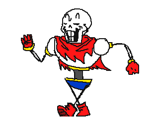 Papyrus from Undertale performing a walking dance with swinging arms in pixel art style.