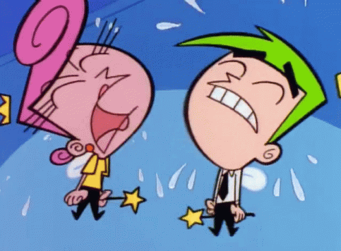Wanda and Cosmo from The Fairly Oddparents are shown crying with tears streaming down their faces.