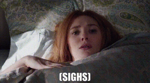 Wanda Maximoff (Elizabeth Olsen) from Wandavision sighs while lying in bed, looking tired.
