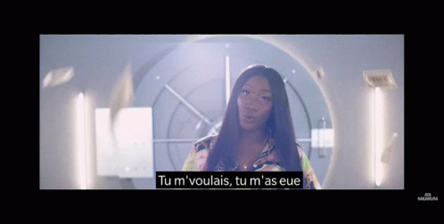 Aya Nakamura performs, singing "Tu m'voulais, tu m'as eue" in a stylized, futuristic setting.