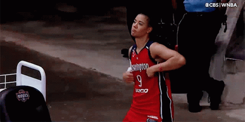 Natasha Cloud of the Washington Mystics performs an energetic celebration dance on the court.