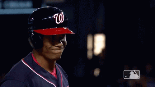 Juan Soto, wearing his Washington Nationals baseball helmet, on the field during an MLB game.