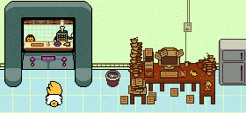 Pixel art scene from Undertale featuring Mettaton and Frisk watching television in a kitchen.