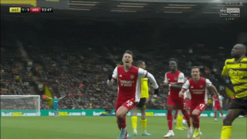 Gabriel Martinelli celebrates his goal for Arsenal against Watford in the Premier League match.
