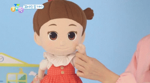 Kkoya, the adorable doll from TV Kindergarten, waves and says 'Hello!' in Korean.