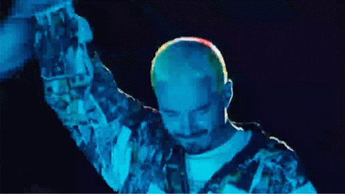 J Balvin, The Boy From Medellin, waves to the crowd under blue lights, wearing a patterned jacket.