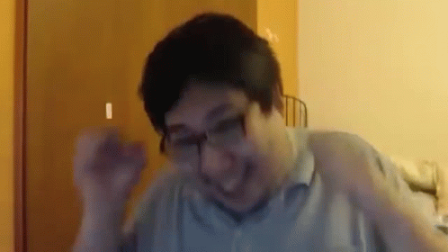 Wayne75525 國動 張葦航 making a funny face and laughing loudly.