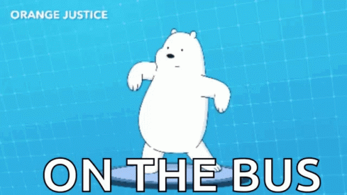Ice Bear from We Bare Bears performs the Orange Justice dance, with 'On The Bus' text.