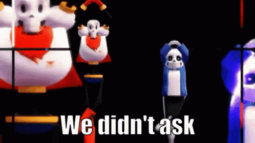 Sans and Papyrus from Undertale spinning with the 'We didn't ask' meme text overlay.