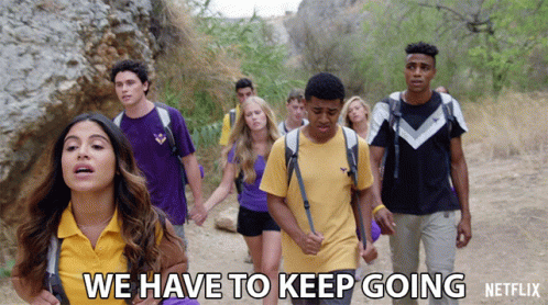 Cinthya Carmona, as Sophie Cardona, and a group of young people hike on a trail, determined to keep going.