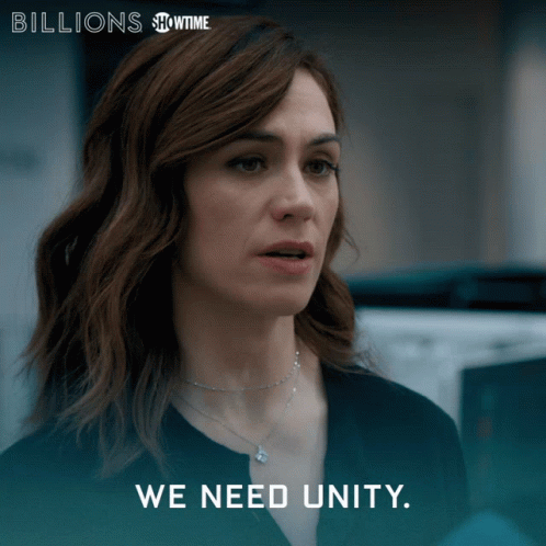 Maggie Siff as Wendy Rhoades emphasizes the importance of unity in a scene from Showtime's Billions.