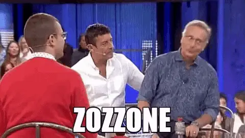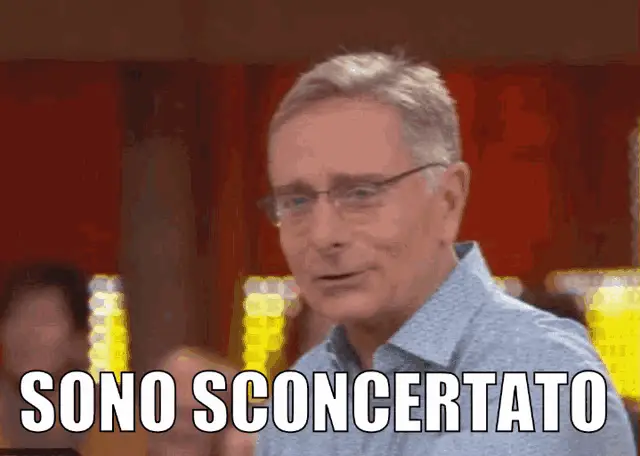 Paolo Bonolis and Luca Laurenti on stage, exclaiming 'Beh, ma questo è meraviglioso!' during a show.