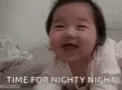A cute baby smiles, then peacefully falls asleep, with the text 'TIME FOR NIGHTY NIGHT' displayed.