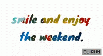 Animated text displaying 'smile and enjoy the weekend' with changing colors on a white background.