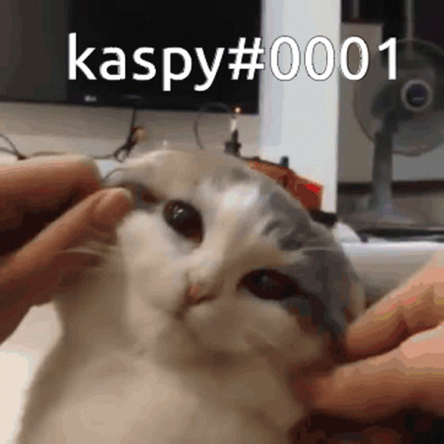 A cute cat is gently petted on its face, with 'kaspy#0001' overlaid, referencing Weiland and Whole Lotta Red.