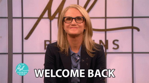 Mel Robbins, host of The Mel Robbins Show, greets viewers with a warm 'Welcome Back' message.