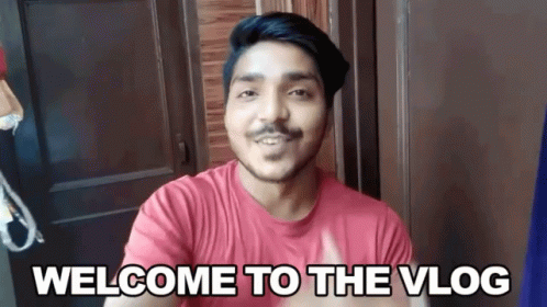 Hari Om enthusiastically welcomes viewers to his vlog with a friendly smile and on-screen text.