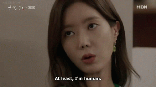 Im Soohyang delivers the line "At least, I'm human" in a Korean drama scene, looking up with emotion.