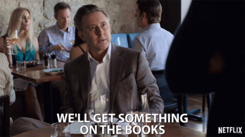 Jake Weber as Barry Walker says "We'll get something on the books" in a restaurant scene from a Netflix show.