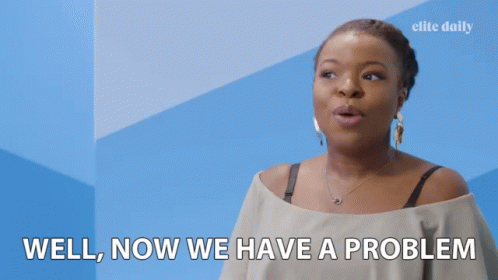 A woman expresses concern, stating 'Well, now we have a problem' next to a large drawn letter X.