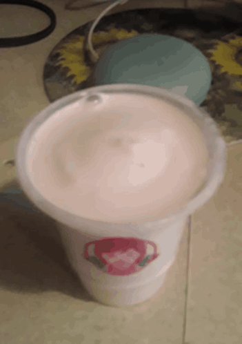 A close-up of a creamy Wendy's Strawberry Frosty in a clear cup.