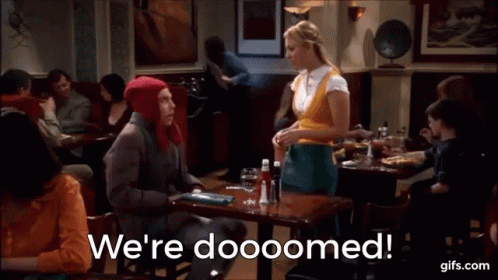 Sheldon Cooper dramatically exclaims 'We're doooomed!' in a memorable scene from The Big Bang Theory.