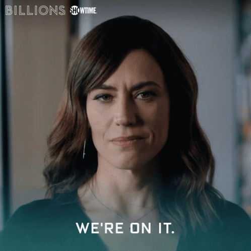 Wendy Rhoades, played by Maggie Siff, confidently states "We're on it" in a clip from Showtime's Billions.