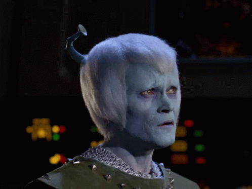 Thelev from Star Trek: The Original Series asks 'What are you doing?' with a confused look.