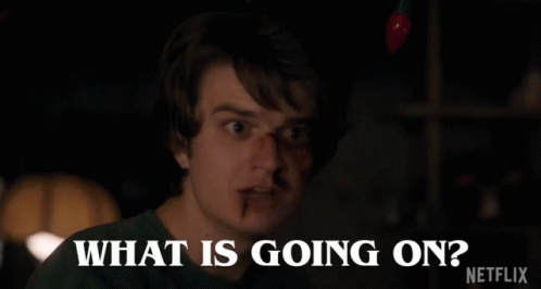 Steve Harrington (Joe Keery) from Stranger Things reacts with confusion, exclaiming 'What is going on?'