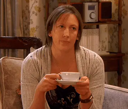 Herbert Garrison from South Park, holding a megaphone and exclaiming 'Wait, Wait, Wait!' next to a Christmas tree.