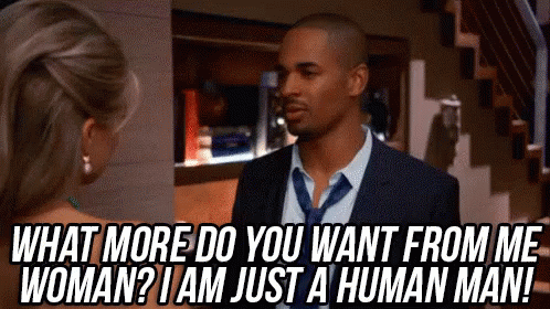 Damon Wayans Jr. as Brad Williams delivers the iconic line, 'What more do you want from me woman? I am just a human man!'