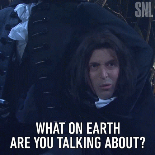 Beck Bennett on Saturday Night Live, looking confused and asking 'What on Earth are you talking about?'
