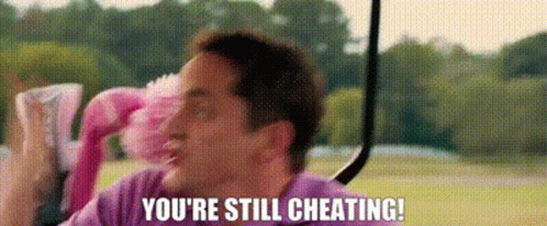 Ben Falcone in 'What To Expect When You're Expecting' exclaims, 'You're still cheating!' during a golf game.