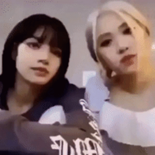 BLACKPINK's Lisa and Rosé together, with one pointing at the camera.