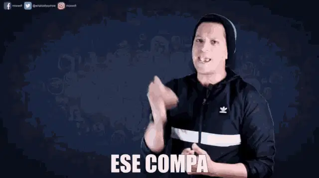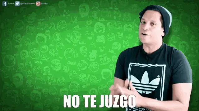 A man from Whatdafaqshow emphatically states 'A Mí No Me Digan' (Don't Tell Me) with expressive gestures.