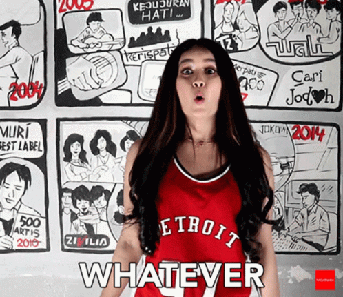 Sella Selly2Tik Tok in a red Detroit jersey, expressing 'Whatever' with a shrug in her music video.