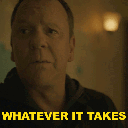 John Weir, played by Kiefer Sutherland, looks determined with the text 'WHATEVER IT TAKES' displayed.
