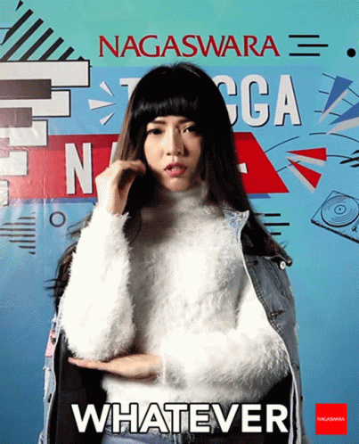 Gladys expresses a 'Whatever Terserah' attitude in front of a Nagaswara sign, reflecting indifference.